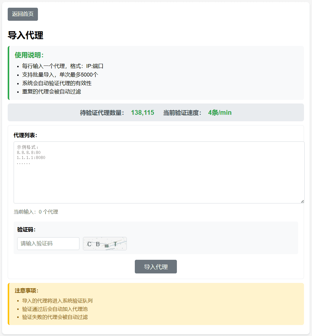 永久免费HTTP/HTTPS/SOCKS代理池,智能验证全网公开代理,支持自定义代理导入,实时更新高可用IP资源,保障网络访问稳定畅通。